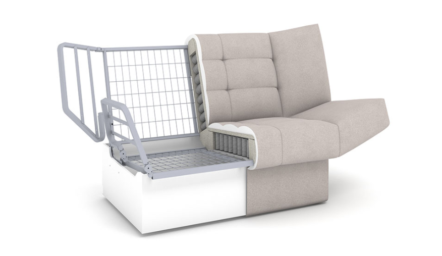 Главное преимущество-матрас Супер комфорт на основе блока независимых пружин и слоя ППУ, который «подстраивается» под разный вес сидящих или лежащих людей. Еще один плюс дивана - механизм раскладывания клик-кляк, который давно известен и популярен среди потребителей, так как позволяет легко разложить диван, не прилагая особых усилий. Механизм рассчитан на постоянное использование в качестве спального места.