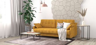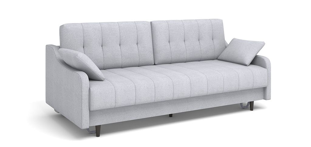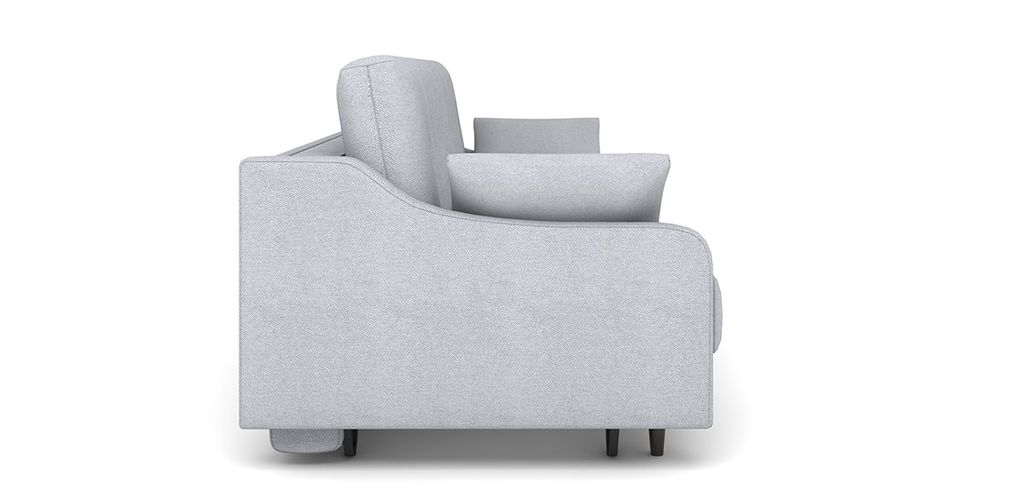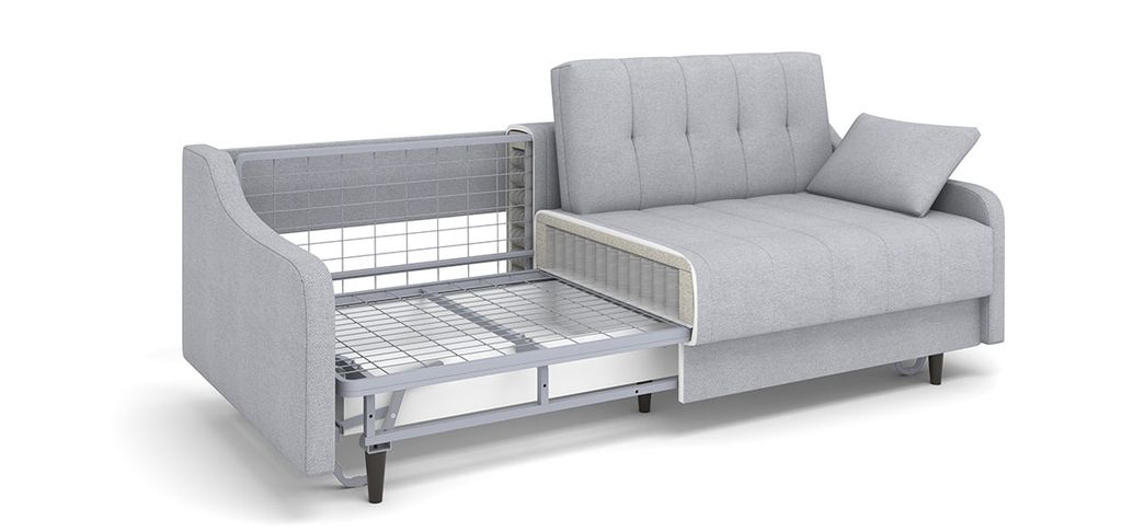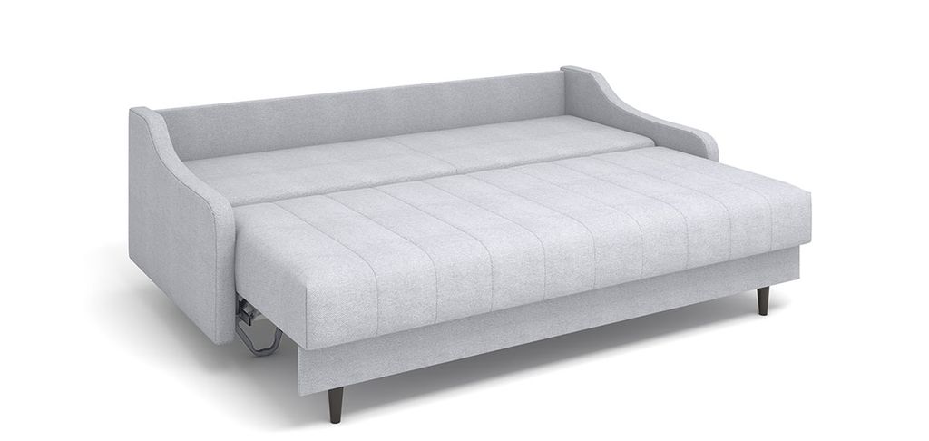 Диван Женева в стиле mid century. Особенностью модели являются фигурные подлокотники, которые в сочетании с минимализмом прямых форм сиденья и спинки. Высокие опоры придают дивану легкости и облегчают процесс уборки: клиренс 10 см позволяет свободно маневрировать роботу-пылесосу. Задняя спинка в основной ткани, что дает возможность размещать диван в любом месте помещения. Особую прочность дивану придает металлический каркас из конструкционной стали, а простой и надежный механизм трансформации - пантограф - обеспечивает долгий срок службы.