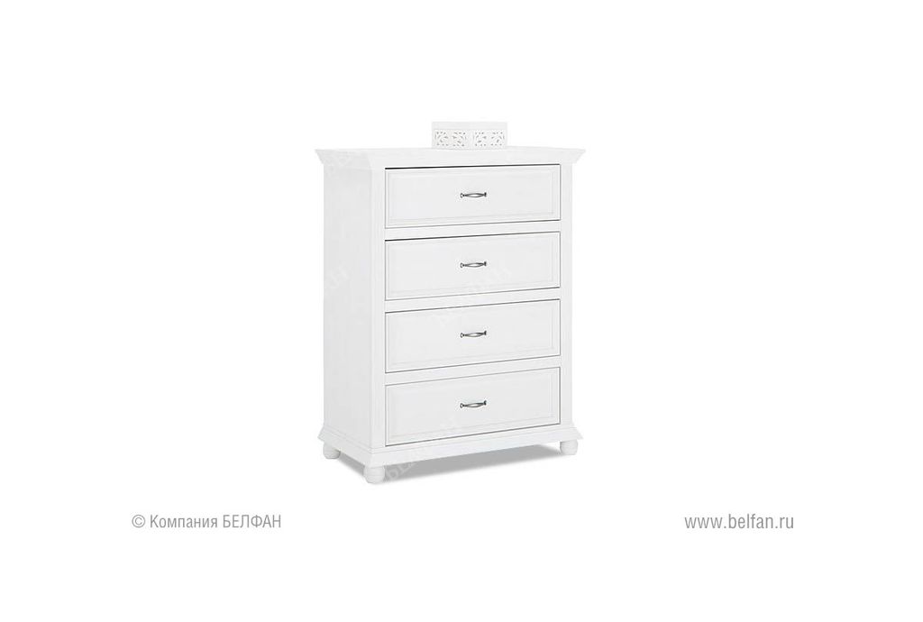 Комод "Елена" 04 (Elena) из массива сосны для Вашей спальни в стиле Прованс. Высококачественный комод предлагает достаточно места для хранения различных вещей. За четырьмя ящиками вы можете искусно скрыть свой беспорядок.