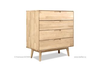 Изготовленный из массива дуба, комод из коллекции «Ирвинг» создан для ценителей изящной простоты и высокого качества. Стилизация под модное в 50-70-х годах направление в интерьере Mid-century modern проявляется в минималистичных ручках в виде ниш на фасаде, а главное – в тонких ножках, которые делают образ комода более невесомым и легким. Четыре вместительных ящика позволят разместить в них личные вещи и разные мелочи. Задняя стенка выполнена из массива дуба и не отличается от фасада, поэтому Вы можете поставить комод в любое место и использовать его как инструмент для зонирования пространства.