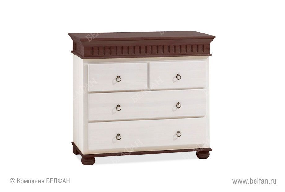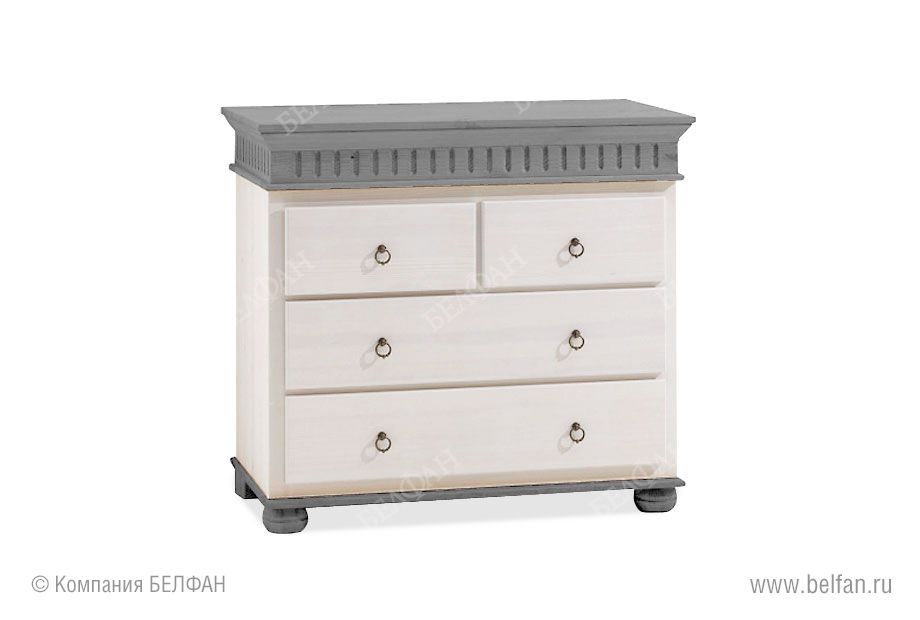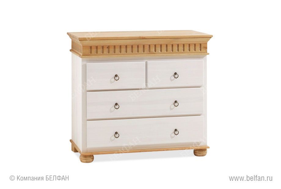 Стильный комод «Хельсинки-22» (Helsinki) из массива сосны с ящиками разных размеров отлично подойдет для вашей комнаты. Комод оснащен двумя широкими и двумя узкими выдвижными ящиками. Предназначен для хранения белья.