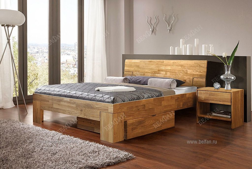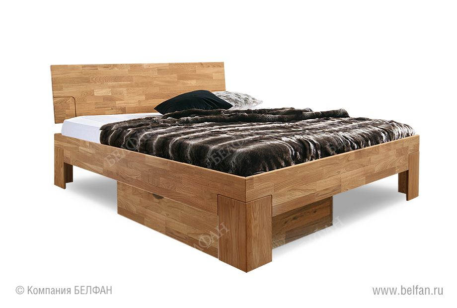 В двуспальной кровати «Берген» С 160 идеально проявились свойственные скандинавам обстоятельность и любовь к природе. Мебель из массива дуба сделана из брусков, которые специально не подбирались по рисунку. Кроме того, натуральная древесина пропитана исключительно бейц-маслом, защищающим ее от влаги, УФ-излучения и различных загрязнений. Низкое изножье позволяет подойти к кровати с трех сторон, а невысокая спинка дает возможность поставить кровать в помещении с ограниченной высотой потолков, к примеру, в мансарде. Чистота линий и материалов должна поддерживаться чистотой в помещении: этого легко достичь, благодаря высоте ножек кровати, которая позволяет без трудностей проводить влажную уборку.