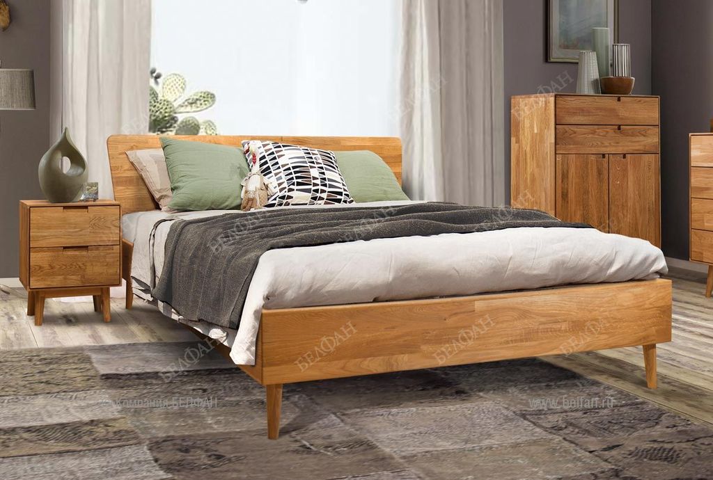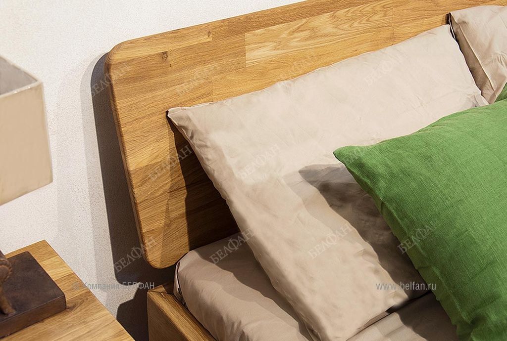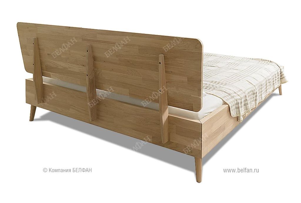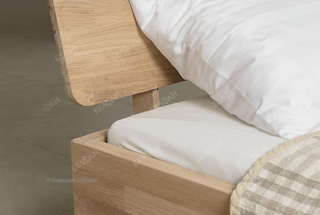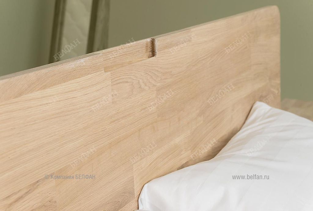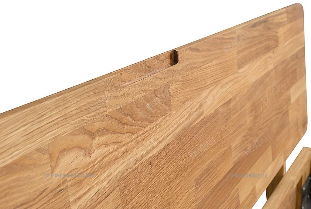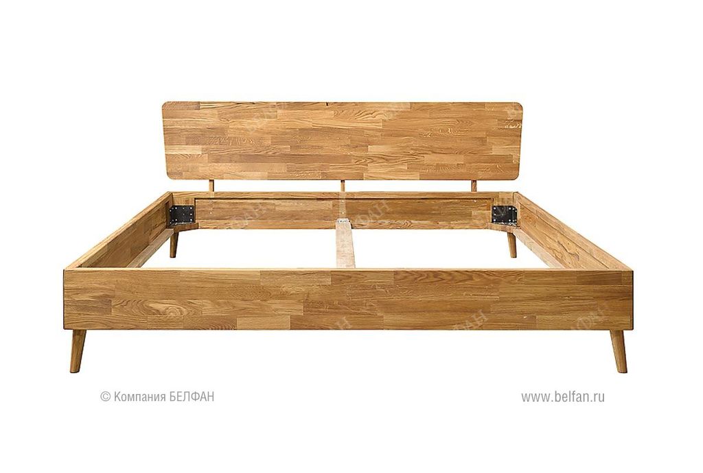 - Кровать изготовлена из массива дуба, ножки и внутренние опорные бруски из массива сосны.
