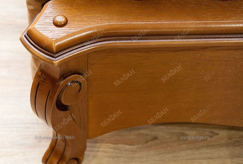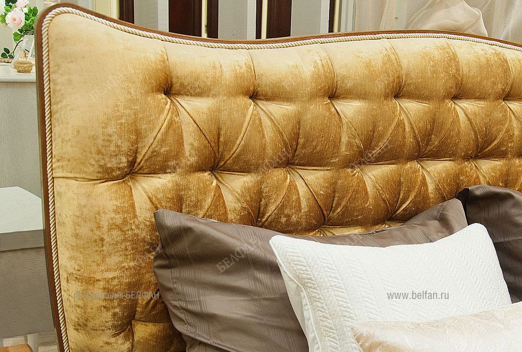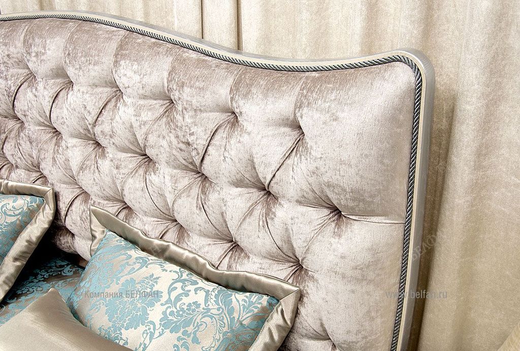 - Высокое изголовье, обитое высококачественной тканью с элементами декоративной пиковки.