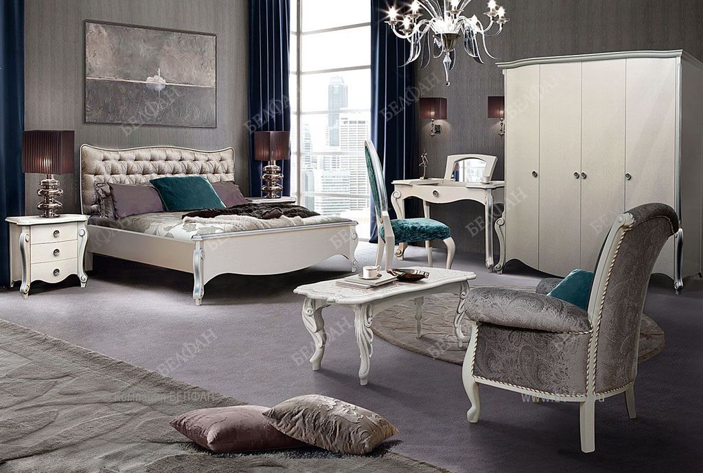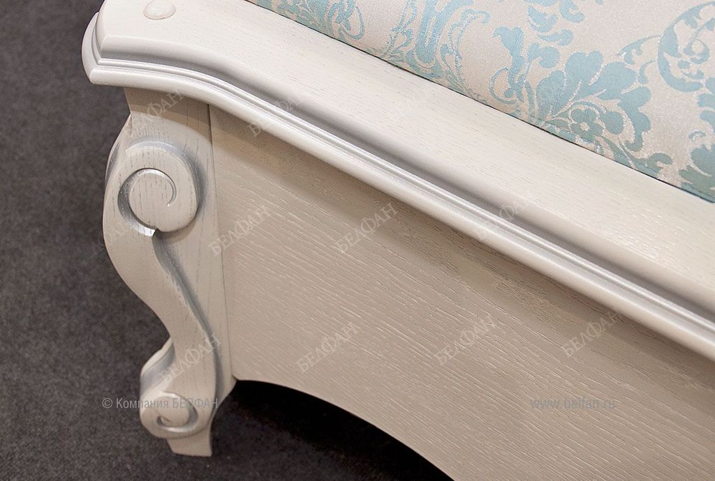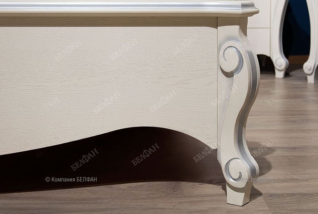 Кровать на деревянном каркасе «Луиза» (Luisa) 160 выигрышно соединила в себе внешнюю роскошь с рациональностью конструкции. Мягкая высокая спинка, обитая тканью высокой категории, изогнутые ножки — не кровать, а настоящее ложе. Кровать может быть выполнена в двух цветовых решениях. Каждое из них прекрасно по-своему: так, если Вы не склонны к усложнению интерьера и, более того, хотите сделать его более воздушным и легким, то «белая эмаль с серебряной патиной» будет самым лучшим выбором. А вот для того, чтобы подчеркнуть презентабельность обстановки, Вам следует выбрать оттенок «коньяк», который добавит нотки представительности и благородства Вашему мебельному интерьеру.