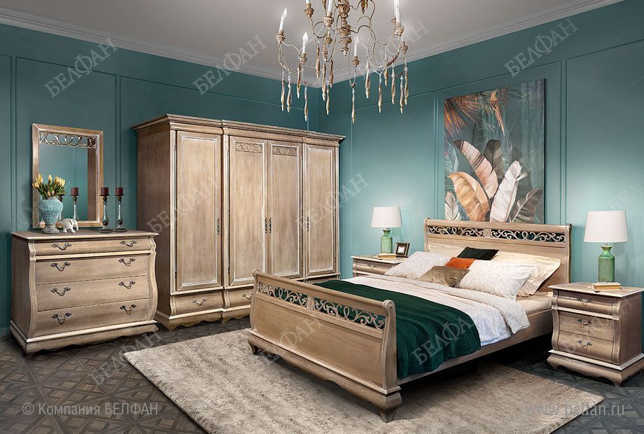- Ажурная резьба в верхней части изголовья и изножья.