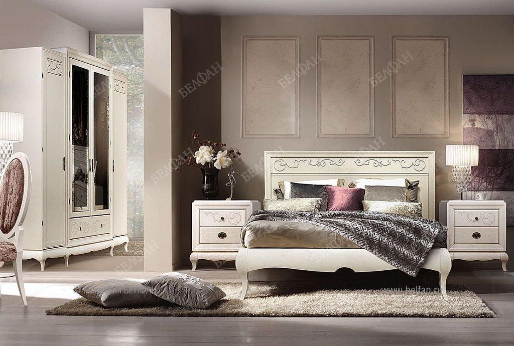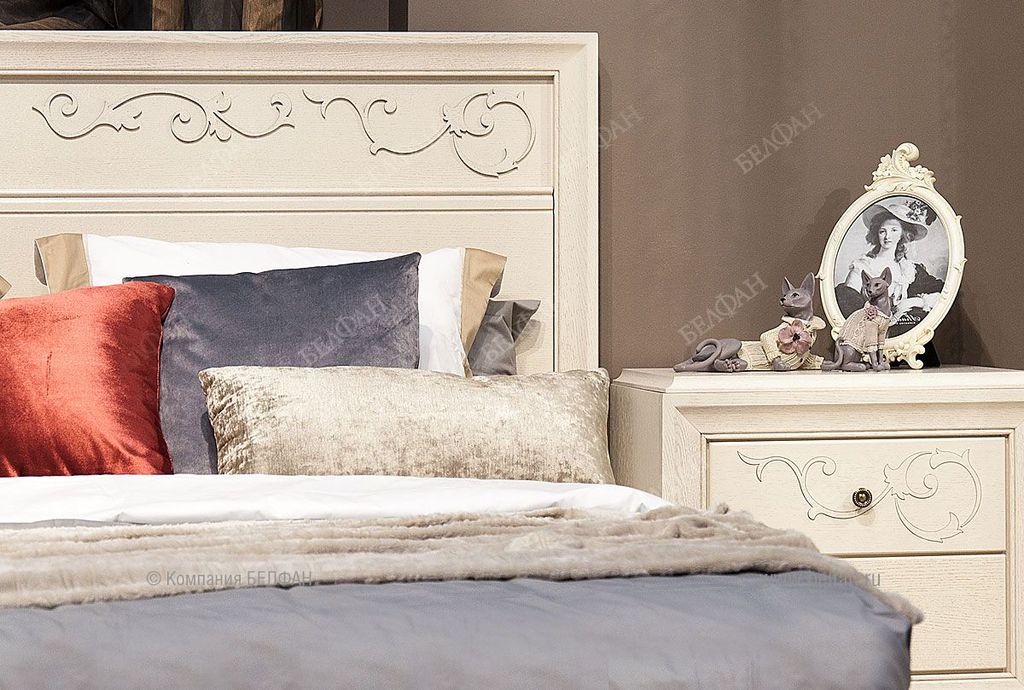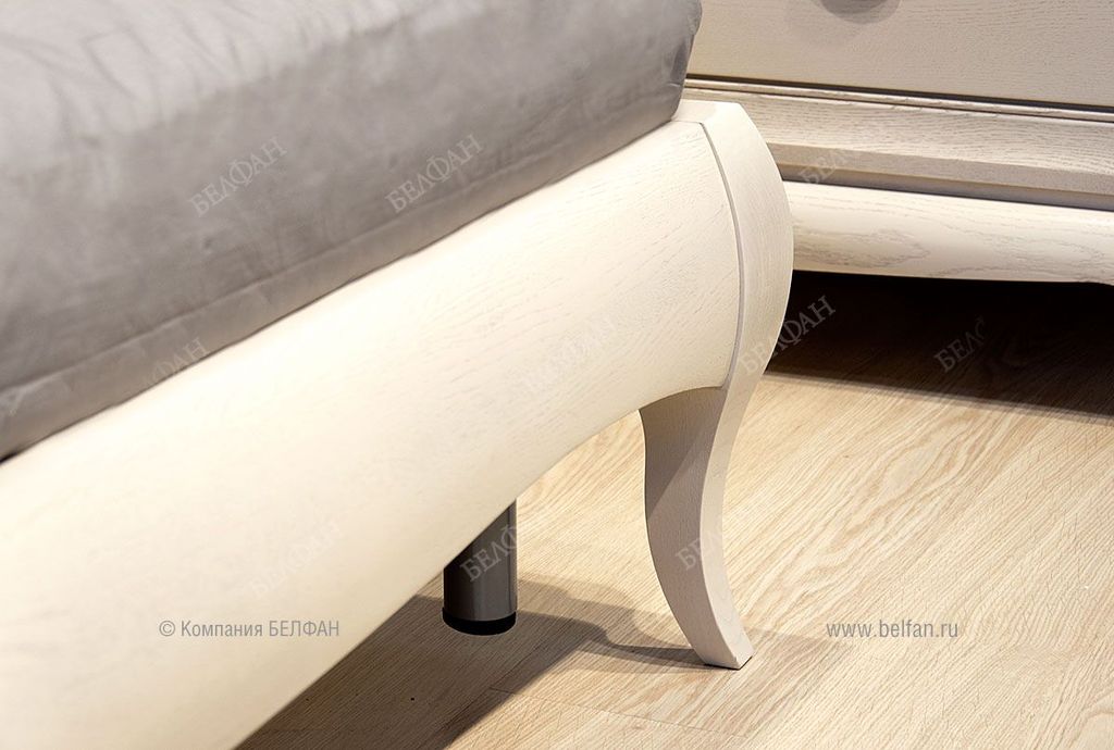 - Высота фигурных ножек из массива дуба позволяет легко проводить влажную уборку, ведь чистота и свежесть в спальне очень важны.