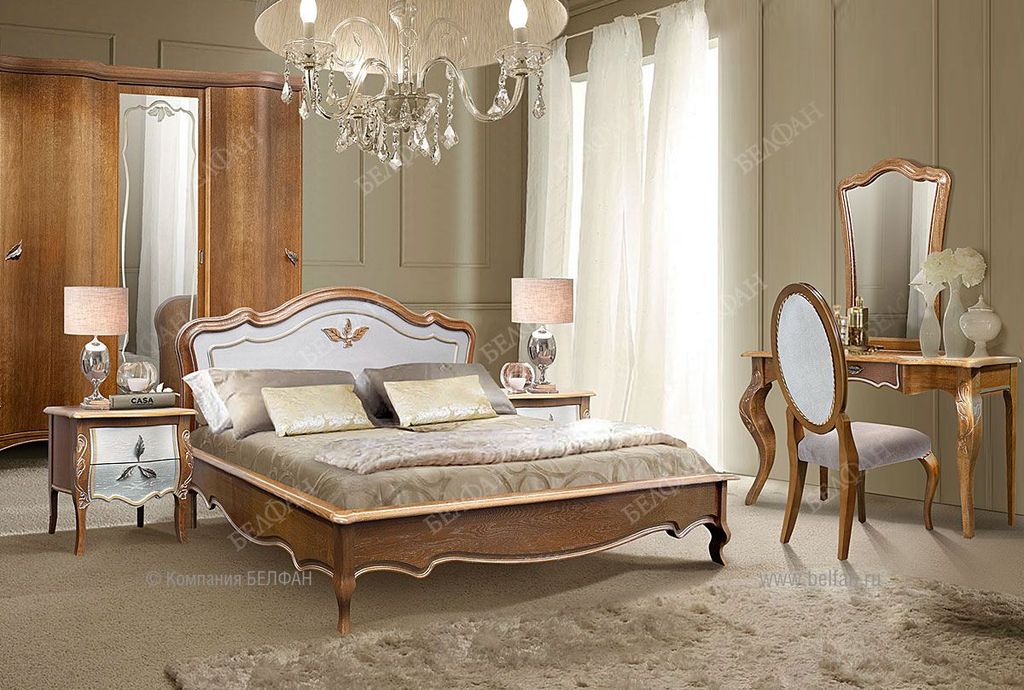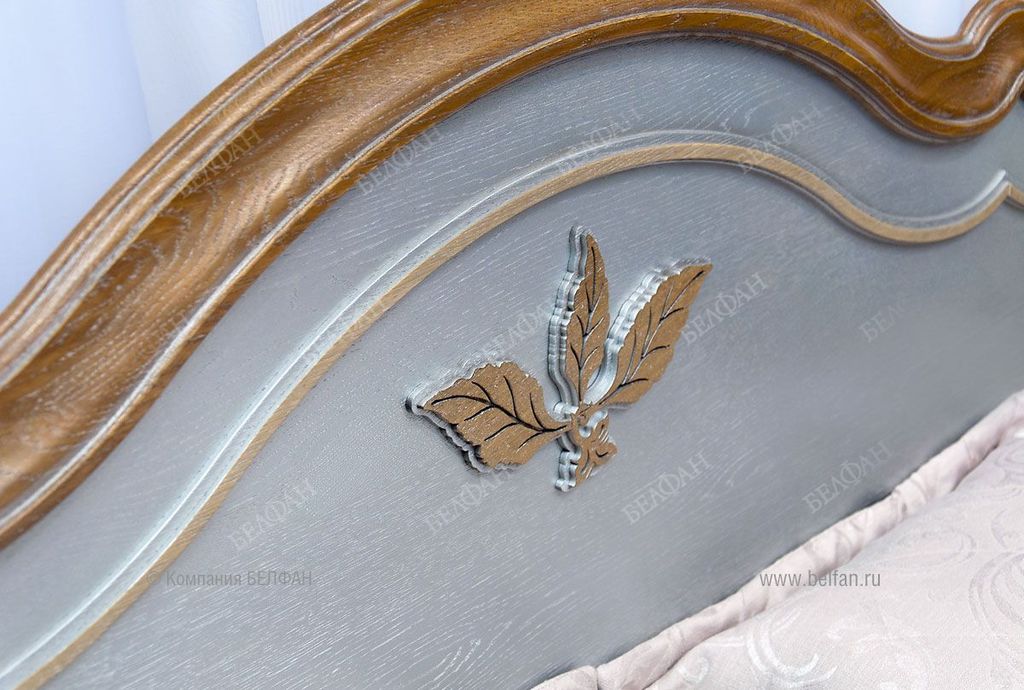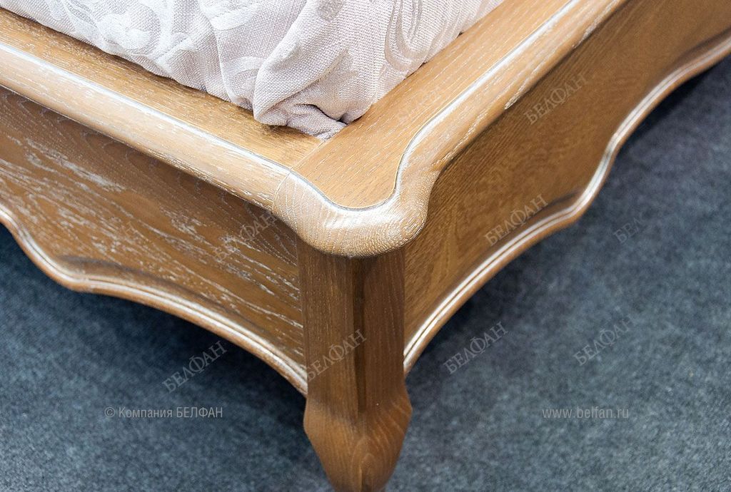 - Высота фигурных ножек с резьбой из массива дуба позволяет легко проводить влажную уборку, ведь чистота и свежесть в спальне очень важны.