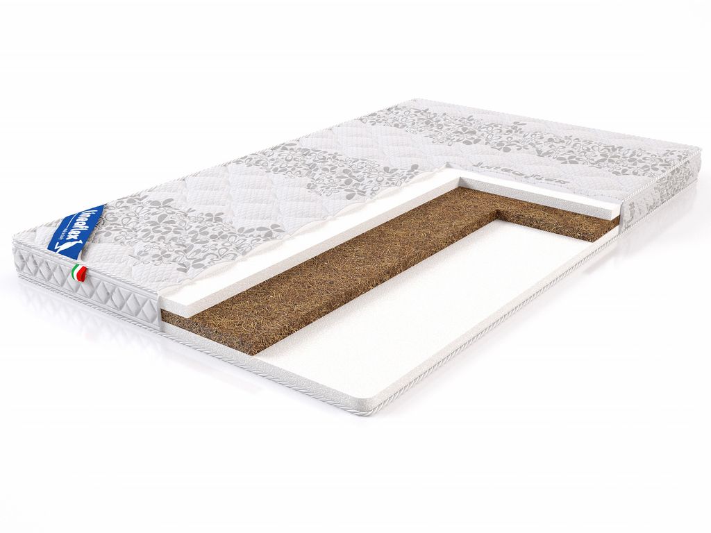 Кокос - латексированная кокосовая койра. Кокосовое волокно, применяемое при производстве матрасов, представляет собой пропитанные латексом (латексированные) термоскрепленные плиты. Высокое содержание латекса (50%) обеспечивает материалу упругость и устойчивость к нагрузкам. Экологичность, природная эластичность и хорошая воздухопроницаемость плит из кокосового волокна делают поверхность матраса жесткой и упругой. Обладает уникальным сочетанием свойств: прочность, упругость, устойчивость к любой влажности, воздухопроницаемость, антиаллергенность.