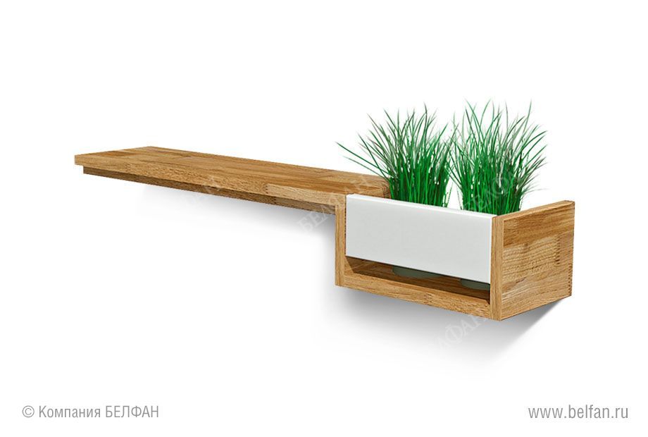 - Полка изготовлена из комбинации материалов - массива дуба и эмали. Из массива дуба изготовлены корпус полки в цвете "бейц-масло, белый" и вставка в цвете «белый, бейц-масло».