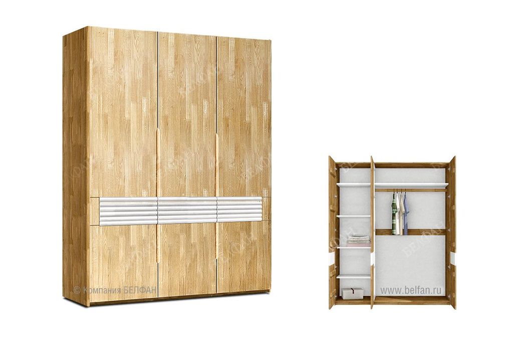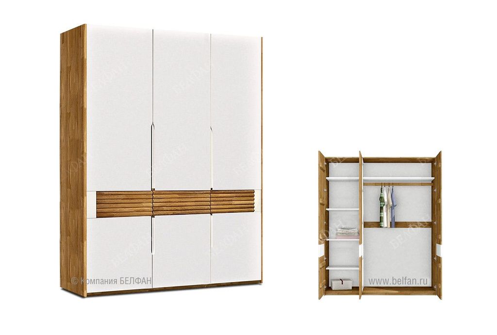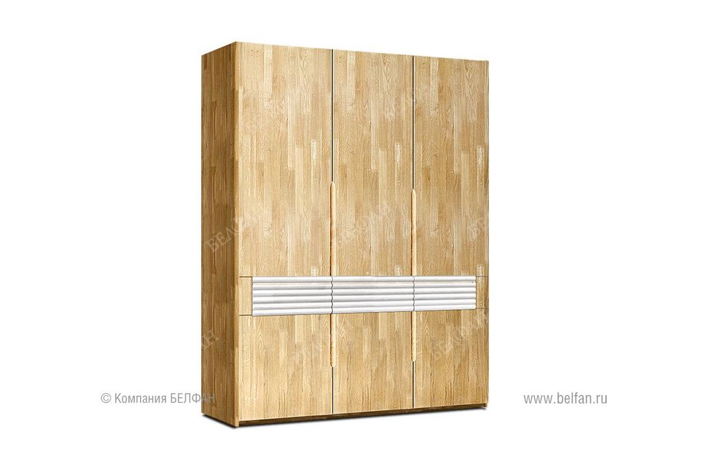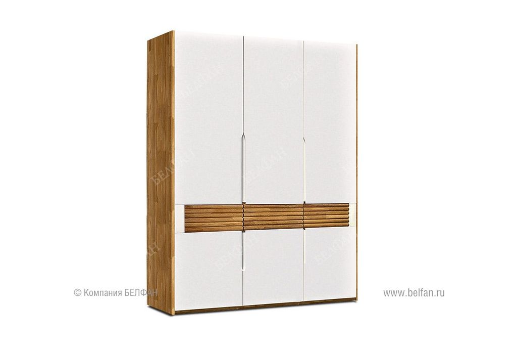 В коллекции представлен трехдверный шкаф для одежды Wallstreet ("Уоллстрит") с сочетанием текстуры натурального дерева и акцентных белых вставок, который собрал в себя черты современного стиля. Сдержанно-светлая цветовая гамма, упорядоченность внутреннего пространства шкафа, белые фасады или вставки на выбор. Шкаф для одежды Wallstreet благодаря светлым цветам отлично сочетается с другими элементами интерьера спальни, детской, гостиной или прихожей.