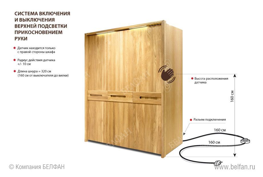- Система включения и выключения верхней подсветки прикосновением руки.