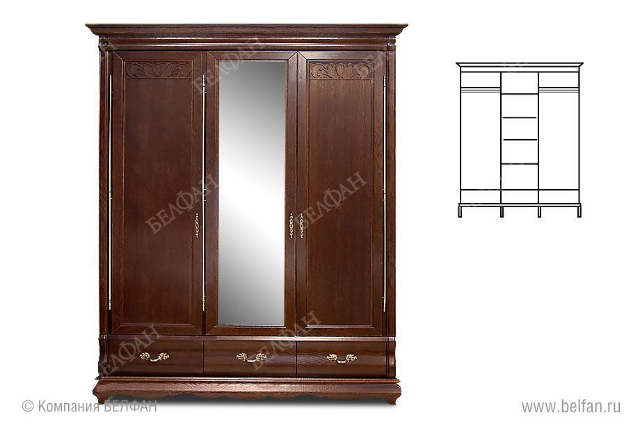 Особенности трехдверного шкафа для одежды (с зеркалом) «Оскар»: