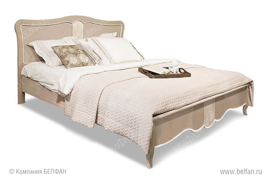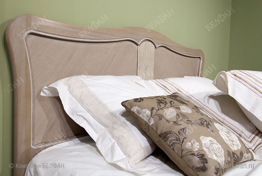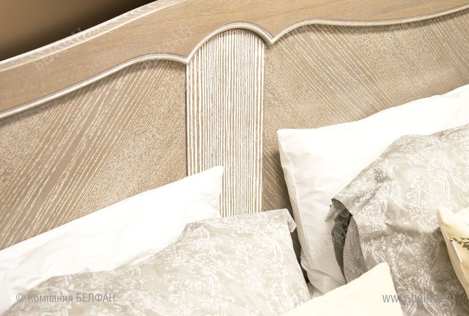 - Утонченная кровать «Katrin» выглядит очень изящно благодаря волнообразной форме изголовье и изножья, нанесенной вручную патины и оригинальному оттенку «жемчужный дуб». Низкое изножье позволит подойти к кровати с любой из трех сторон, а высокая спинка – удобно расположиться за чтением книги или просмотром кинофильма. Изящно-изогнутые высокие ножки позволят без труда проводить влажную уборку, что, несомненно, немаловажно в спальне.
