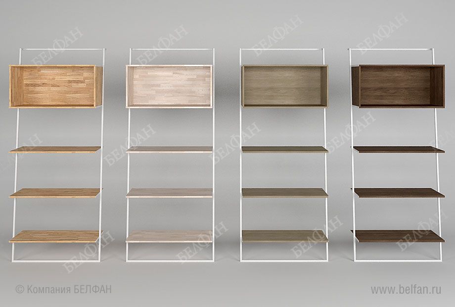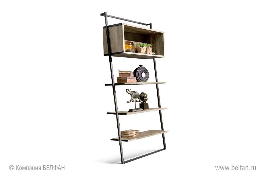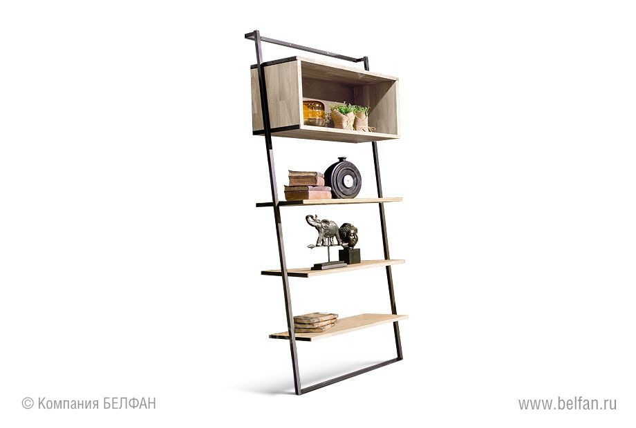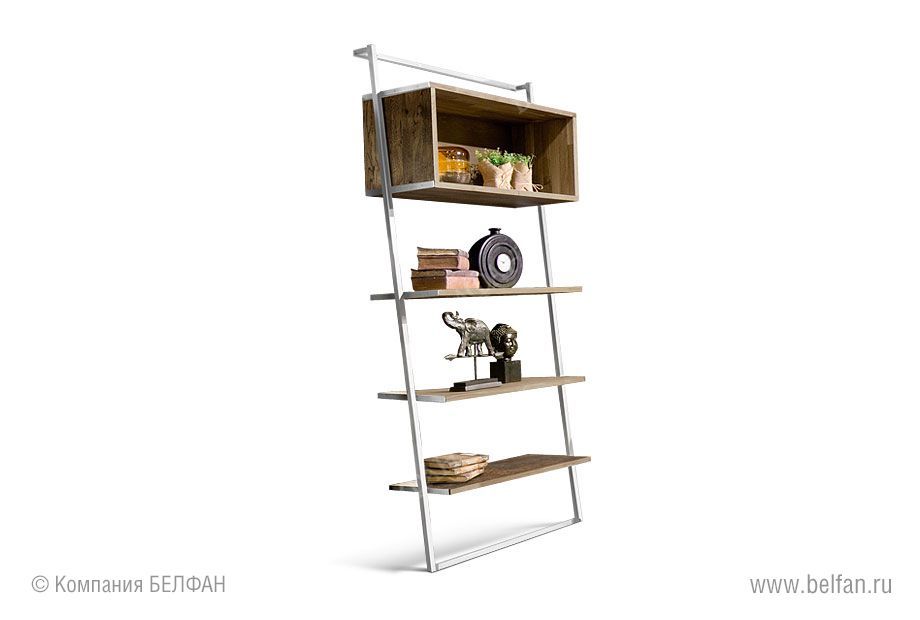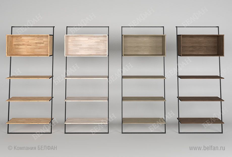 Широкий стеллаж Art Collection (Арт Коллекшен) 445 с тремя полками и нишей, изготовлен из массива дуба на металлическом каркасе.