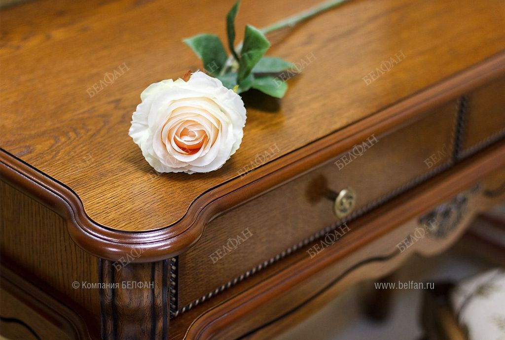 Хотите почувствовать себя прекрасной сеньорой, которая, просыпаясь ранним итальянским утром в своем поместье, первым делом бежит приводить себя в порядок к туалетному столику? Нет проблем! Туалетный стол из коллекции «Алези» (Alezi) привнесет в любой интерьер нотку Италии. Изящные гнутые ножки, инкрустация по технологии маркетри и оригинальная фурнитура делают это изделие олицетворением итальянской классики. Дополните его навесным зеркалом из коллекции «Алези» и наслаждайтесь красотой и элегантностью этого комплекта.