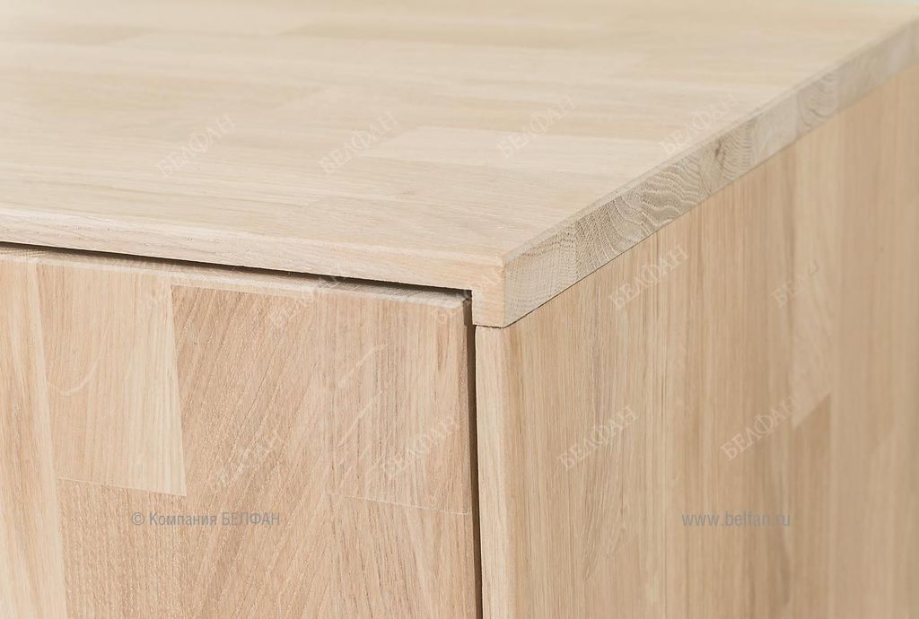 - Тумба изготовлена из массива дуба, дно ящиков и задняя стенка – натуральный шпон дуба + фанера из натурального дерева.