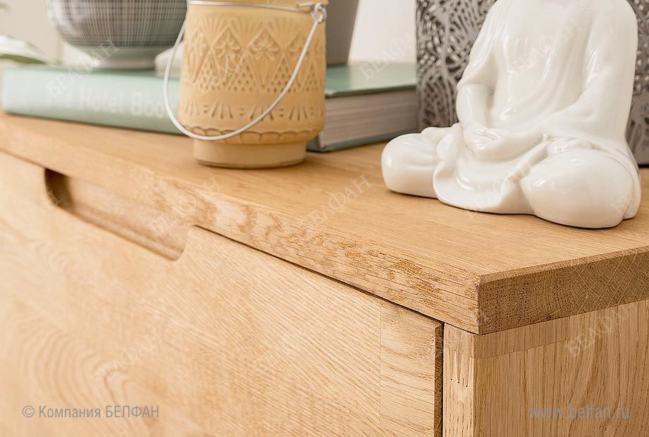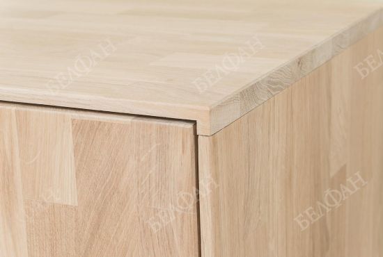 - Тумба изготовлена из массива дуба, дно ящиков и задняя стенка – натуральный шпон дуба + фанера из натурального дерева.