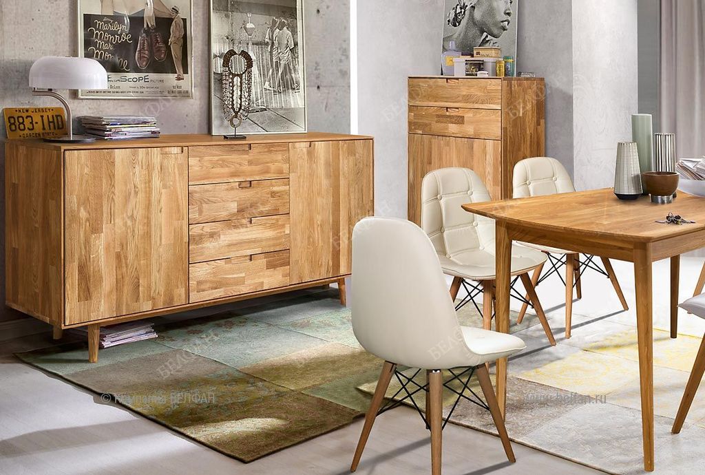 Прекрасным дополнением к Вашей гостиной или спальне станет высокая тумба из коллекции «Ирвинг». Лаконичные формы, прямые линии и отсутствие декора подчеркивают самобытность стиля Mid-century modern, главной изюминкой которого являются тонкие ножки и минималистичные ручки в виде ниш на фасаде. Функциональность этой тумбы – на высшем уровне: два вместительных выдвижных ящика и отделение с двумя дверями позволят Вам хранить личные вещи, одежду, постельное белье и разные мелочи. Высококачественные дверные петли обеспечивают их бесшумное открывание, а направляющие полного выдвижения позволят Вам использовать каждый сантиметр ящиков.
