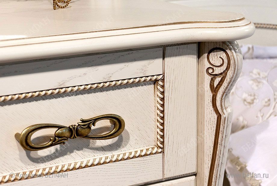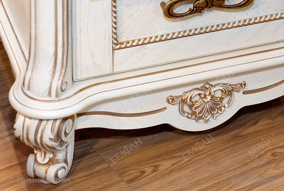- Витиеватые декоративные элементы, выполненные в золоте или бронзе, подчеркивают роскошь изделия и элегантность итальянского стиля.