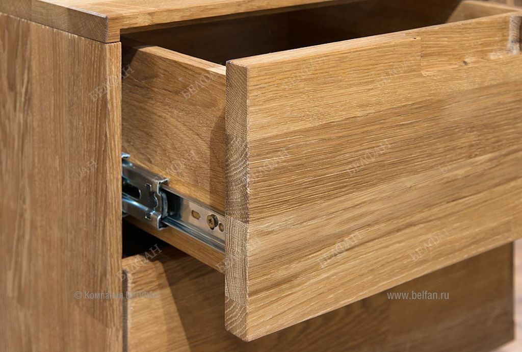 - Тумба изготовлена из массива дуба, дно ящиков и задняя стенка – натуральный шпон дуба + фанера из натурального дерева.