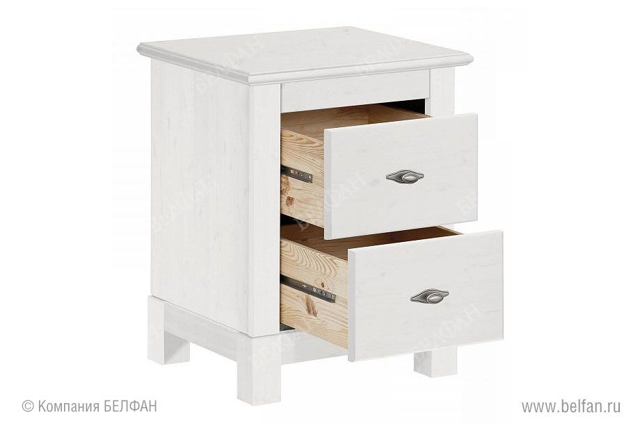 Тумба прикроватная «Рауна» 02 для Вашей спальни в стиле Прованс. Имеет достаточное пространство для лампы, книг и журналов. В ящиках вы также можете хранить все, что вы хотите от посторонних взглядов.