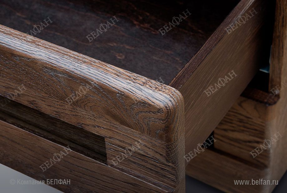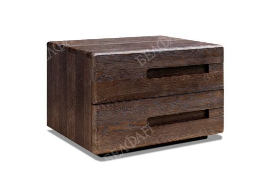 Прикроватные тумбы из коллекции «Хедмарк» гармонично дополняют кровать. Строгая геометрия в сочетании со сглаженными углами, нарочито подчеркнутая текстура дуба в сочетании с металлическими вставками – все эти противоречия отражают самобытность брутального интерьера, который любит мебель в стиле Лофт за её прямые и лаконичные формы. Тумба оснащена двумя выдвижными ящиками, которые бесшумно открываются и закрываются благодаря направляющим с доводчиками европейского производства.
