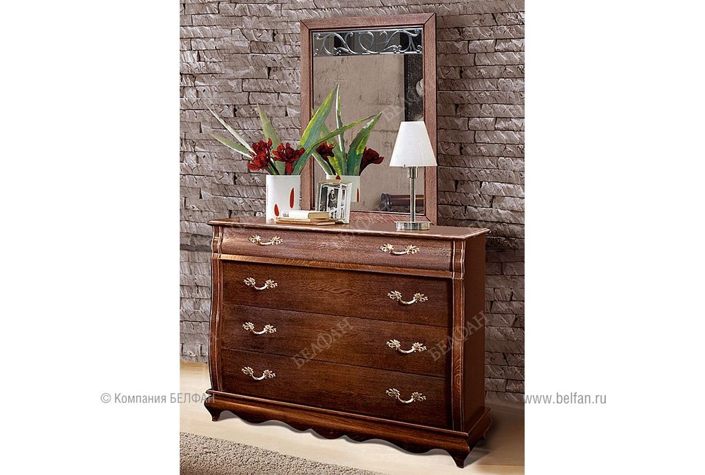 Роскошное настенное зеркало «Оскар» (Oskar) 05 отлично впишется в интерьер как спальни, так и гостиной. Зеркальное полотно несет на себе тонкие линии рисунка, что подчеркивает классический дизайн, не перегружая его излишними деталями. Оправа для зеркала изготовлена из отборного массива дуба и предлагается в двух вариантах исполнения: «орех» и «белая эмаль с темной патиной».