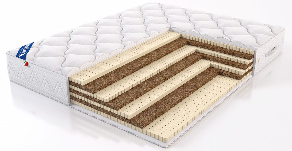 Кокосовое волокно, применяемое при производстве матрасов, представляет собой пропитанные латексом (латексированные) термоскрепленные плиты. Высокое содержание латекса (50%) обеспечивает материалу упругость и устойчивость к нагрузкам. Экологичность, природная эластичность и хорошая воздухопроницаемость плит из кокосового волокна делают поверхность матраса жесткой и упругой. Обладает уникальным сочетанием свойств: прочность, упругость, устойчивость к любой влажности, воздухопроницаемость, антиаллергенность.